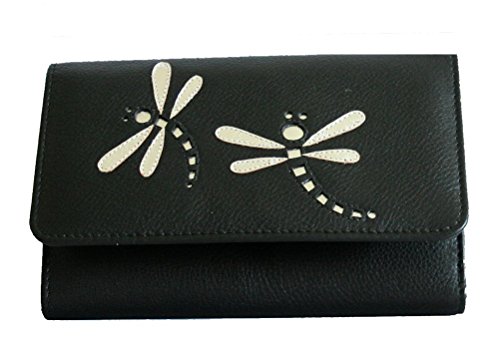 Best Seller! Azure Dragonfly Tri Fold Purse With RFID (Black) Review