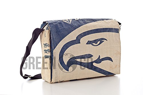 GreenEarthCo offer Messenger Bag, Cross Body Bag, Made from Recycled Cement Bags, Upcycled, Hand made in Cambodia, Eagle Design – Blue/White. This awesome product currently limited units, you can buy it now for £19.95, You save -