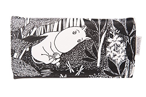 Swedish Illustrator Tove Jansson first brought the Moomins to life back in 1945 and it's been a huge fan favourite ever since. This ultra-nostalgic wallet features a black and white print straight from Moomin Valley making it perfect for anyone with fond memories of the classic characters. Pretty and practical, it's got tonnes of space for all your essentials and we especially love the cute Moomin zip pull on the back!. - Black and white Moomins Wallet - Made from faux leather with a printed original Moomin illustration on the front and grey interior - Opens up to reveal two note slots, two large inner sleeve pockets and 6 card slots. - Also has a zipped pocket for your coins and a clear window pocket, perfect for displaying your favourite photo - Finished with a zipped exterior pocket, topped off with a metal Moomin zip pull and Moomin logo - Closes with a popper fastening. - Composed of a soft and durable PVC - Measures approx. 19cm x 10cm when closed - 100% official product - Same Day Despatch